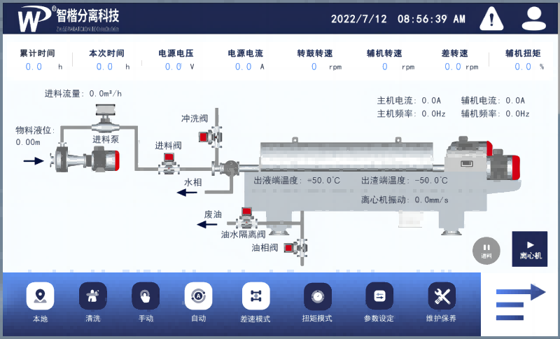 - 清洗結束后,關閉清洗閥門,離心機自動停止;